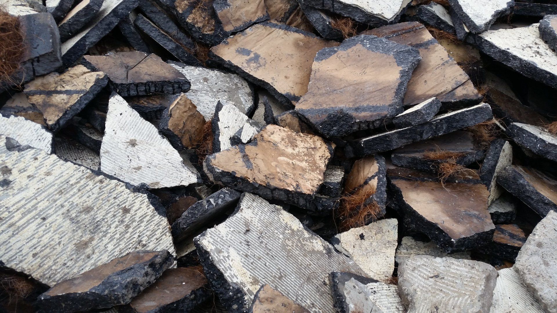 (Asphaltaufbruch teerfrei aus Gebäuden, sortenrein ohne Isolierstoffe aus Kamelhaar und Papieranhaftungen)