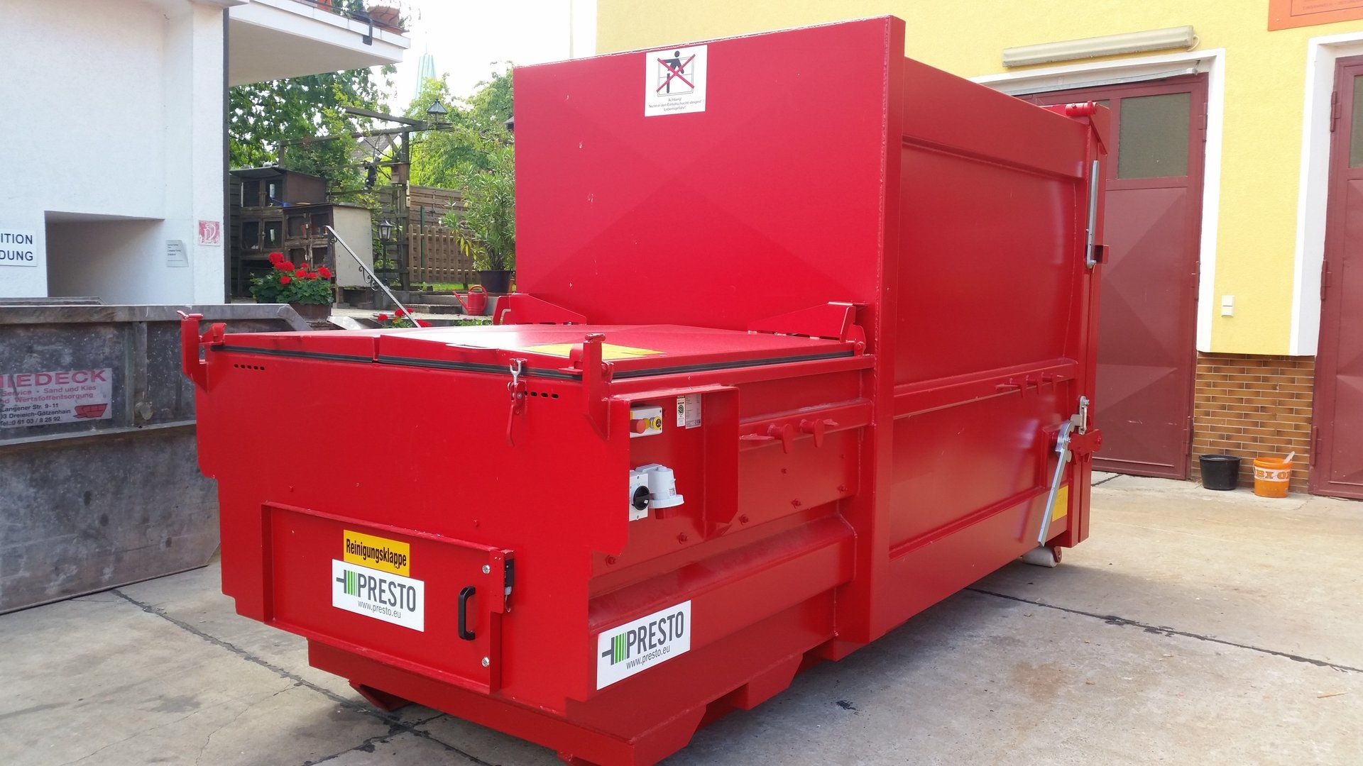 - Reduzierung von Transporten durch Verdichtung des Abfalls. Presscontainer verdichtet lose Materialien von bis zu 40 cbm auf 10 cbm